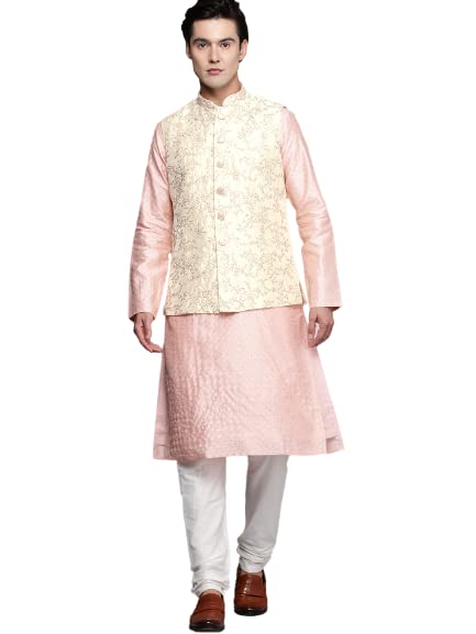 Product Details Material CompositionArt Silk Care InstructionsDry Clean Only LengthMid Thigh Length StylePrinted Country of OriginIndia About this Item Material :- Comfortable Art Silk material which is specially designed for your skin which will provide you a elegant and trendy look Design :- Traditional SelfDesign Printed Weave jacket underlines its casual and ethnic allure through its latest design Fashion :- Your amazing fashion sense inspires everyone. Carry forward this tradition and flaunt in your best look teaming in this ethinic wear on any occasion The brand Manyavar kurta set is fully made by finest artisans of India. The entire garment is made by a single artisan instead of chain-system production. Recommended use of this garment is festive, party, wedding, evening and other occasions as preferred by the customer Everyone uses partywear on numerous occasions, give this kurta set as a thoughtful gift for your loved one s next birthday, anniversary, wedding or any occasion. This is why it makes the perfect present for your dad, husband, son, or friendOriginal price was: ₹2,999.00.₹2,815.00Current price is: ₹2,815.00. Add to cart -