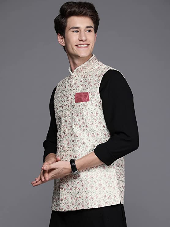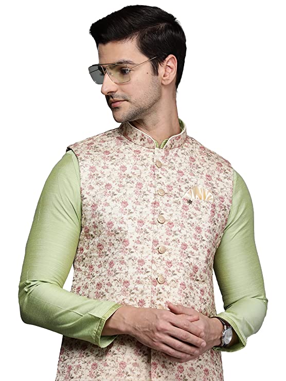 Product Details Material TypeArt Silk StyleNehru Jacket Neck StyleCollared Neck PatternPrinted Country of OriginIndia About this Item Material :- Comfortable material which is specially designed for your skin which will provide you a elegant and trendy look Jacket Type :- This festive wear nehru jacket for men underlines its casual and ethnic allure through its latest design. Fashion :- Your amazing fashion sense inspires everyone. Carry forward this tradition and flaunt in your best look teaming in this ethinic wear on any occasion Brand :- Manyavar is your one stop destination for making any given day an occasion, we understand that your clothes are an extension of your personality.The entire garment is made by a single artisan instead of chain-system production. We recommend to use this item on your special occasion Everyone uses partywear on numerous occasions, give this ethinic outfit as a thoughtful gift for your loved one s next birthday, anniversary, wedding or any occasion. This is why it makes the perfect present for your dad, husband, son, or friend.Original price was: ₹11,499.00.₹11,126.00Current price is: ₹11,126.00. Add to cart