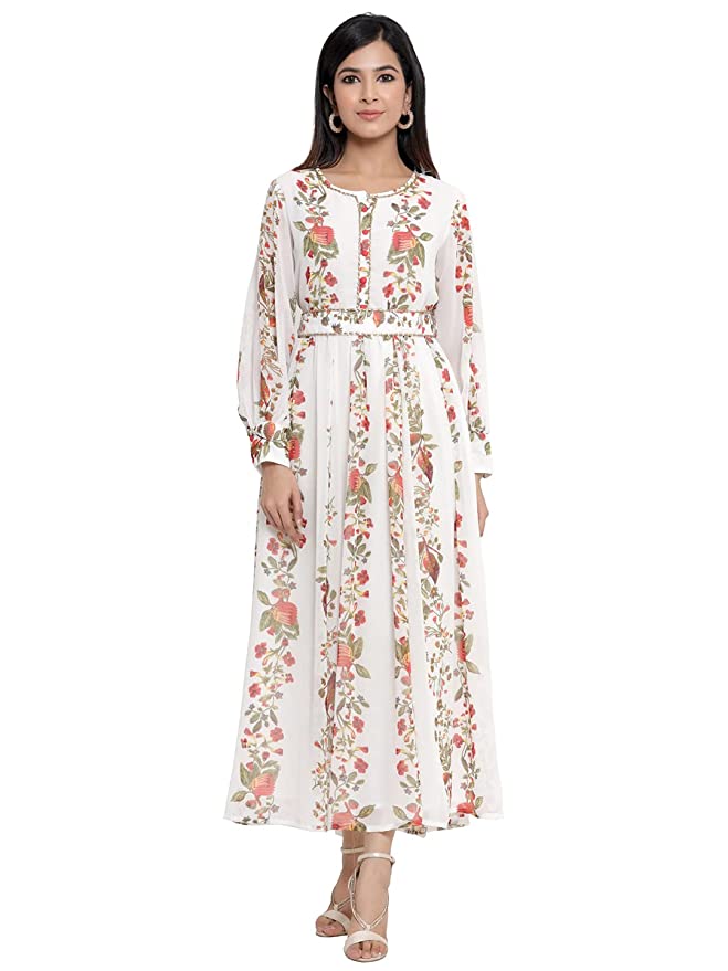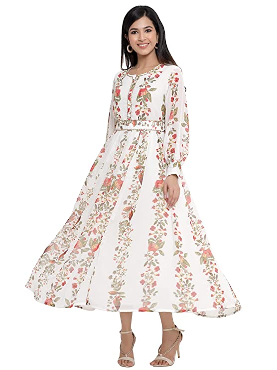 Product Details Material CompositionChiffon StyleFit And Flare PatternFloral Neck StyleRound Neck About this Item PACKAGE CONTAINS : 1 Dress STYLE & MATERIAL : Present an Elegant collection of Women s Floral Print Chiffon Straight Long Sleeves Fit and Flare Dress For You. This Dress is extremely stylish With Vibrant Colors, soft and comfortable. SUITABLE FOR : Party, Weddings, Regular Wear, Celebrations, Occasions, Festivals, Lohri, Makar Sakranti, Baisakhi, Holi, Raksha Bandhan, Dussehra, Diwali, Navratri, Pooja, Christmas, Onam, Ganesha and Gifting. TYPE OF WORK : Semi Fit With Hook and eye Closure Daily Use Ready To Wear Dress has Button Detailing with bead work and tassels highlighting. DISCLAIMER : Product colours or textures may slightly vary due to photographic lighting sources. To View our entire Product catalogue please Visit Our Juniper Store.Original price was: ₹3,499.00.₹1,572.00Current price is: ₹1,572.00. Add to cart -
