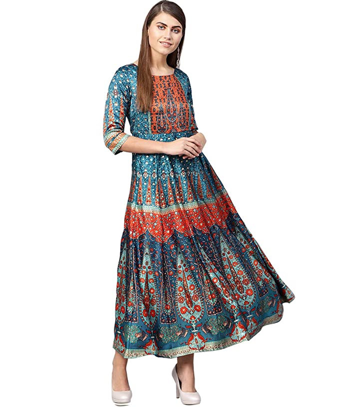 Product Details Material CompositionRayon StyleFit And Flare PatternFloral Neck StyleMandarin Neck Country of OriginIndia About this Item Ethnic Dress; Flared Sleeves Tie-up Dori with Tassels Lace Detailing; Comes with Mask Department Name: Women; Age Range Description: Adult; Item Length Description: Maxi; Sleeve Type: 3 4 Sleeve Closure Type: ButtonOriginal price was: ₹3,499.00.₹1,327.00Current price is: ₹1,327.00. Add to cart