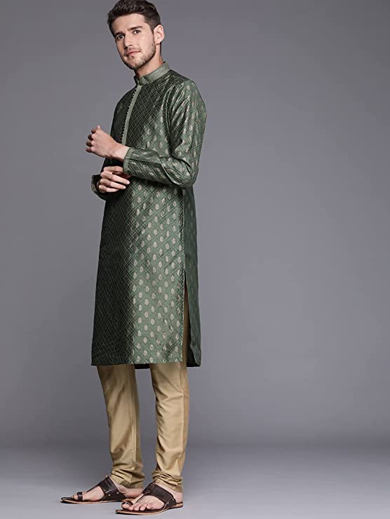 Description Impress everyone with your amazing fashion sense by donning this Kurta set for men. Tailored from finest fabric and fashioned with a chinese collar for a dash of style. It is a great addition to your wardrobe and will win you compliments from one and all Perfect for Gifting: Show the unmatched joy of your happiness to your loved ones by gifting this royal & elegant Kurta by Manyavar. Give your friend, brother, dad, or husband a charming feel with our imperial collection of readymade kurta set, kurta, and more. With many appealing colors and fabrics to choose from, your special one will surely outshine everyone else. In the fast-paced world, traditional Indian styles need to be flaunted with a twist. Manyavar brings to you its range of traditional and Indo-Western outfits, a perfect blend of royal and festive designs emulated into trendy traditional wear for you. Additional Information ManufacturerManyavar, Vedant Fashions Limited. Paridhan Garment Park, SDF Building, Block A, Kolkata 700015. PackerManyavar Creations Private Limited; Srijan Industrial Logistics Park, Part-C, Block-A, Dhulagarh, HOWRAH – 711302. Item Weight400 g Item Dimensions LxWxH33 x 23 x 4 Centimeters Net Quantity2.00 count Generic NameKurta Set