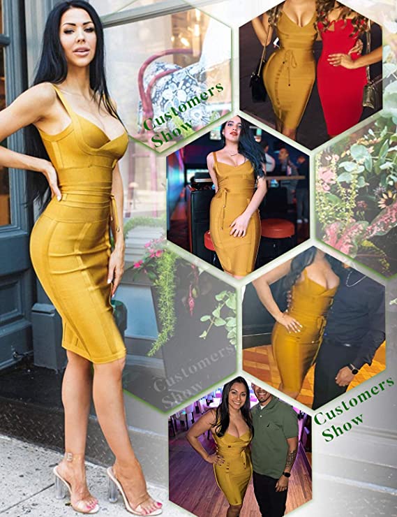 Product Details Material Composition90% Rayon Rayonne 9% Nylon 1% Spandex Elast StyleCocktail Dress Neck StyleV-Neck Occasion TypeParty, Wedding, Formal Country of OriginUSA About this Item Heavy,thick materil,shiny,and super stretch.The exclusive style of this fashion dress is head-turning and always steal the show! Constructed from our ever famous stretch bandage fabric to caress yours curves and create a perfect silhouette. The cross over bust is flattering and the mock wrap waist nips you at your smallest point. Please Refer To Our Size Chart.Bandage Dresses Are Tight Fit !DO NOT Size Up Or Down. The tie waist bandage dress is fit for Clubwear,Weddinganniversary dress,Cocktail Parties dress,Evening gown,Formal Dresses,birthday party dinner dress,wedding guest dressfor women,and formal event.