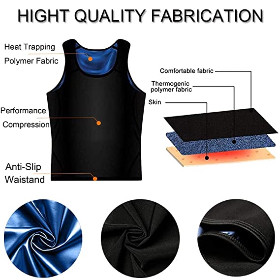 About this Item ✔Professional design: Compared to other normal sauna vest, men’s workout training shirts no special odor, the weight is 1 2 of it, very light but effectively makes you sweat and the outside stays dry quickly. This new waist trainer vest is lightweight and small space,easy to be packed in your gym bag, suitable for all sports in Gym, outdoors and daily wear. ✔Advanced Fabrication: Upgraded Sweat Sauna Fabric include 92%Polyester and 8%Spandex.Consisting of two layers: The inner thermogenic polymer fabric of sauna workout tops can raises your body temperature to help you burn more fat. The outer performance compression fabric instantly slims and shapes your figure. ✔Sauna Effect : This slimming body shaper for workout or daily activities creates a hot saunlike experience while you putting on,you will feel the warmth starting to hit your body instantly and excited about the heat sweat and spa effect, also accelerate calorie burning, improved immune system, enhanced blood flow. Increased sweating also helps with detoxifying and cleansing your pores. ✔Body Shaper: Sauna Vest for men not only make you sweat but also provide a compression on fat abdomen .Provide full coverage and tight compression to your fat belly and love handles,flatten abdomen, provide tummy control and great back support. Making you stand taller, look slimmer and more confident . ✔Comfortable Wear: Lightweight and soft compression tank top for men moves with your body during everyday activities and it’s easy to clean.Featuring a traditional tank top style you can wear it underneath your clothes completely hidden without adding any extra bulk.,such as T-shirts, workout top,sweaters and formal shirts,without any restriction,can give you a long-last comfortable feeling for all day. Suit For All Occasion.