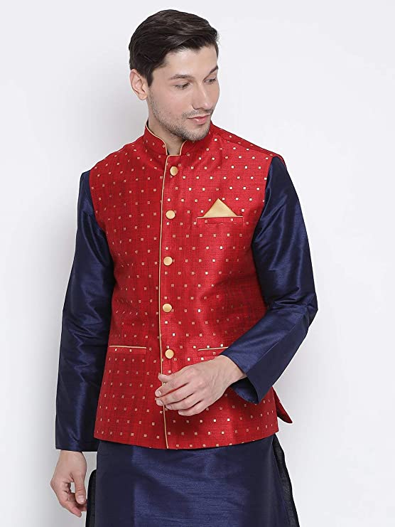 Product Details Care InstructionsDry Clean Only Country of OriginIndia About this Item Fabric: Cotton Silk Blend Contents: a Boys Nehru Modi Jacket Suitable for: Party, Weddings, Regular Wear, Celebrations, Occasions, Festivals, Lohri, Makar Sakranti, Baisakhi, Holi, Raksha Bandhan, Dussehra, Diwali, Navratri, Pooja, Christmas, Onam, Ganesha and Gifting. All our kurtas, Sherwani, Indowestern and Nehru Jackets have loosening over the body measurement. Measurements shown in images or the size chart section are garment measurements, so take adequate 5-6 inches loosening over the little champion s body measurement to get the right fit. Our kurtas are Medium length and Regular Fit. Our Kurta fitting is usually slightly relaxed compared to a Regular Shirt s fitting. Select your Kurta size based on your chest dimension. Wash Care Instructions: Dry Clean preferably or cold light wash